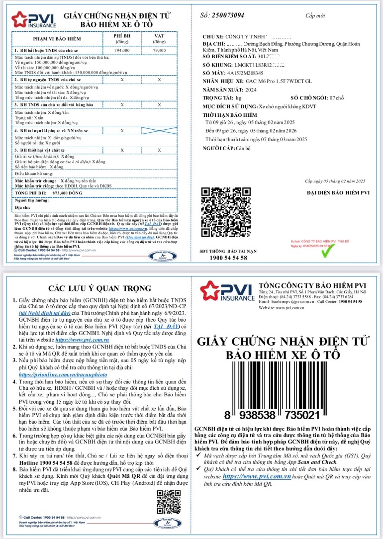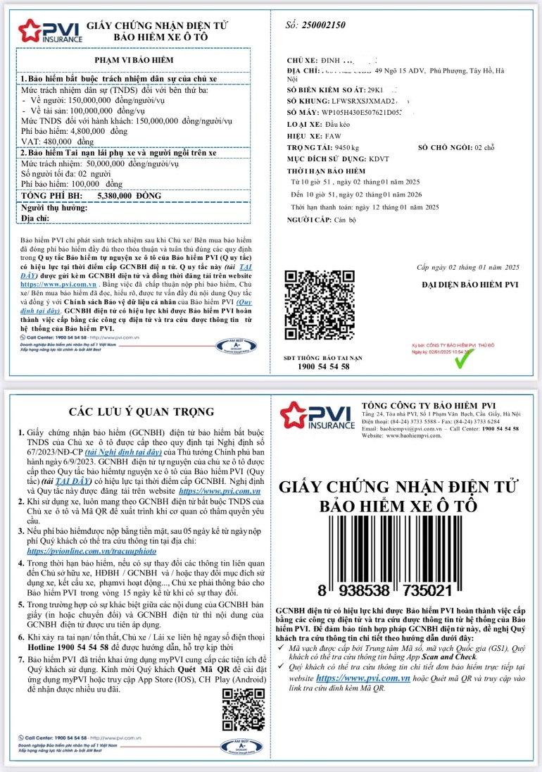 - Nhà cung cấp: Bảo hiểm PVI uy tín chất lượng